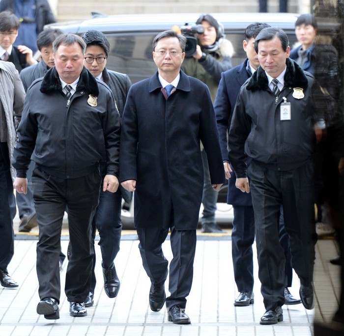 직권남용과 직무유기 혐의로 구속영장이 청구된 우병우 전 청와대 민정수석이 구속전피의자심문(영장실질심사)을 받기 위해 21일 오전 서울 서초구 서울중앙지법으로 들어서고 있다. 2017.02.21.