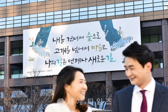 이번 광화문글판 글귀는 윤동주 시인이 그러했듯 삶 속에서 겪게 되는 어려움을 이겨내고 희망을 향해 날마다 새로운 마음으로 살아가자는 메시지를 담았다.
