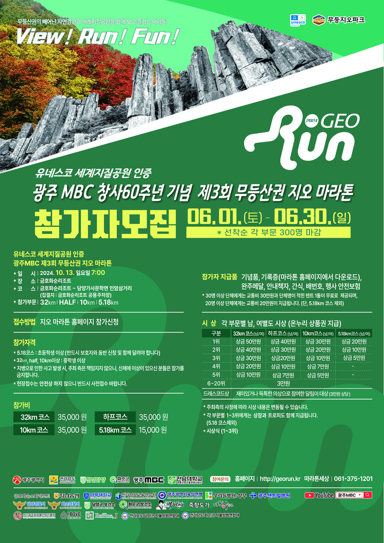 고광완 행정부시장은 “이번 대회는 무등산의 아름다운 절경과 함께 무등산권 세계지질공원을 알리는 이색대회가 될 것”이라며 “마라톤 참가자들이 건강하고 안전하게 완주하기를 바란다”고 말했다.