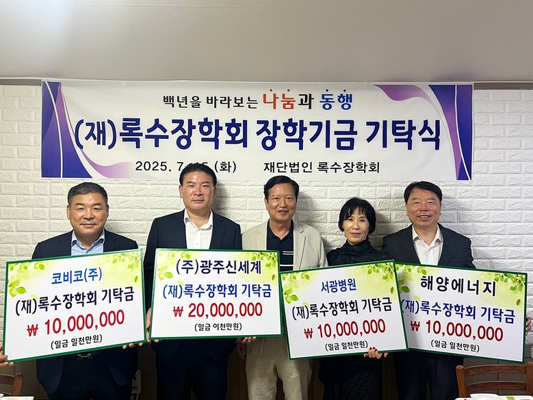 양진석 록수장학회 이사장은 “지역사회의 따뜻한 마음이 소방공무원 자녀들의 미래를 밝히는 데 큰 힘이 되고 있다”며 “특히 이번 기탁에 함께해주신 ㈜광주신세계, 코비코㈜, 서광병원, ㈜해양에너지에 깊이 감사드린다. 이같은 따뜻한 나눔이 사회에 긍정적인 변화를 이끌어낼 것으로 기대한다”고 말했다.