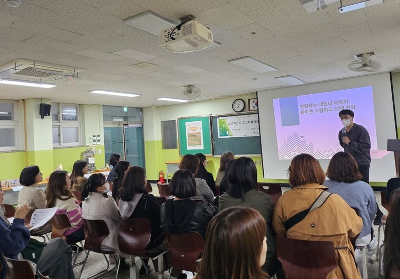 같은 날 저녁 6시 30분부터는 ‘고교학점제의 이해와 올바른 고등학교 선택 전략'이라는 주제로 안준범 교사(광주중앙고등학교 진로융합교육부장)을 초빙하여 학부모 대상 연수를 실시했다.
