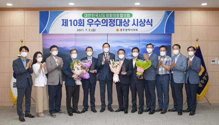 [광주=세계타임즈 손권일 기자] 대한민국시도의회의장협의회가 주관하는 『제10회 우수의정 대상』 수상자로 광주시의회 조석호 부의장과 정무창 운영위원장이 선정되어, 2일(금) 시의회 열린시민홀에서 시상식을 개최했다.