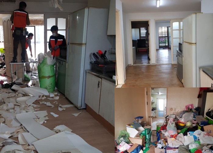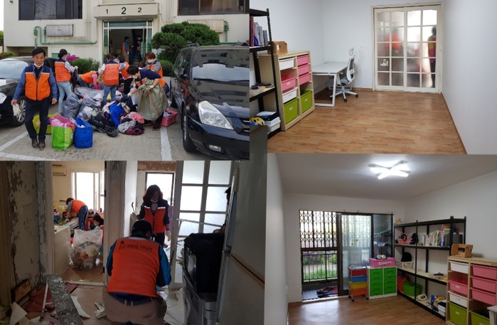 유은상 집수리봉사단장(스마트피해복구공사 대표)은 “도배와 장판을 교체하고, 앵글 조립장 2개를 설치하면서 악취와 쓰레기로 가득한 집안이 깨끗한 환경으로 바뀌어서 행복과 보람을 느낀다.“고 말했다.