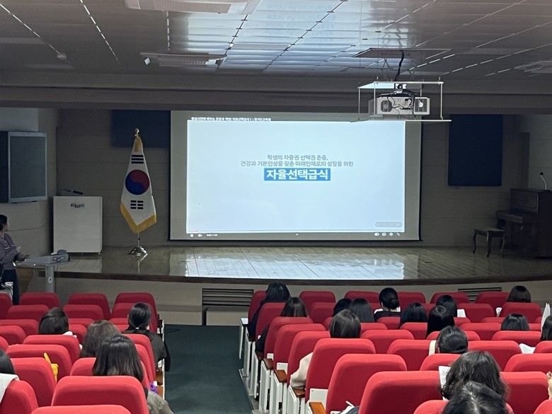 2월 25일 영양(교)사 대상 연수에서는 위생교육과 함께 2026년 학교(유치원)급식 기본방향과 주요 추진사항을 안내하여 정책 이해도를 높였다. 특히, 자율선택급식 운영 사례를 소개하며 학생 참여 중심 급식 운영의 취지와 성과를 공유하였다. 이를 통해 정책 공감대를 확산하고, 자율선택급식이 지닌 교육적 가치를 효과적으로 알리는 기회가 되었다.