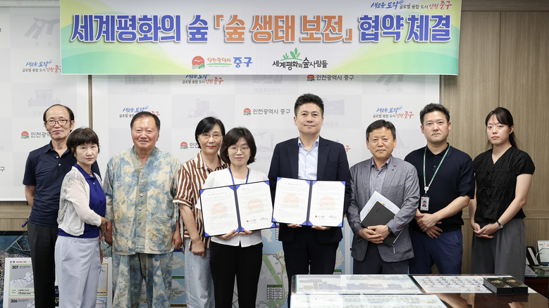 [중구 세계타임즈=심하린 기자] 인천시 중구가 영종국제도시 지역 대표 녹색복지 공간인 ‘세계평화의 숲’의 생태 보전을 위해 ‘세계평화의숲사람들’과 손을 맞잡았다.