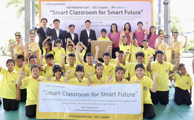 [세계타임즈 = 이송원 기자] KB국민카드 이창권 사장이 해외법인 KB제이캐피탈(KB J Capital) 직원들과 태국 사뭇프라칸주에 위치한 왓 칼롱 스쿨(Wat Kalong School) 초중등학교를 방문해 스마트 교육 공간 및 시설 개선을 위한 기부금을 전달했다.