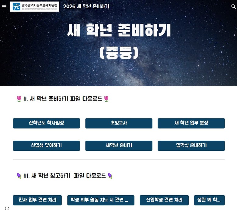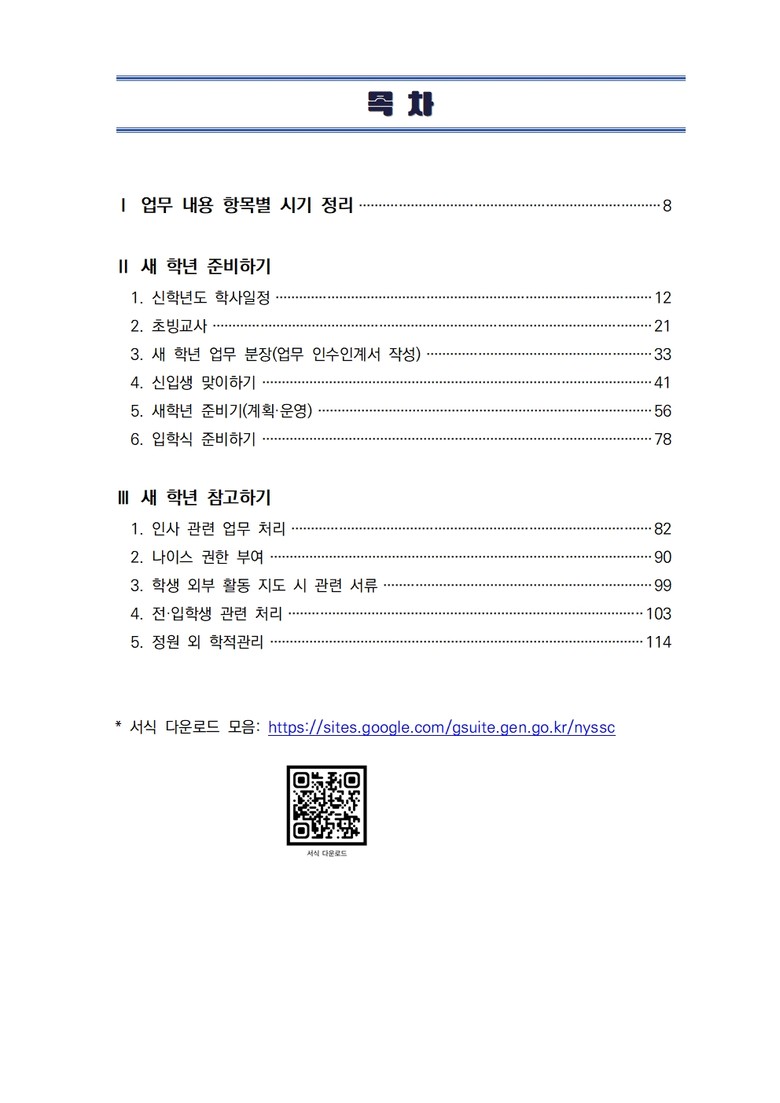 이번 자료는 교원이 새 학기에 겪는 행정 업무 부담을 덜고 학생 교육 준비에 전념할 수 있는 환경을 조성하고자 제작됐다.