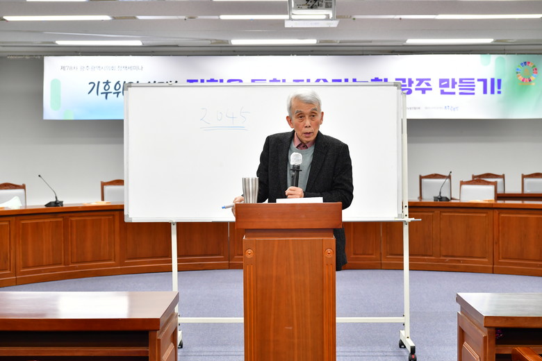 [광주 세계타임즈=손권일 기자] 광주광역시의회 박미정 의원은 지난 4일 시의회 예산결산특별위원회실에서‘기후위기 시대! 전환을 통한 지속 가능한 광주 만들기’라는 주제로 명사 초청 강연을 성황리에 개최했다.