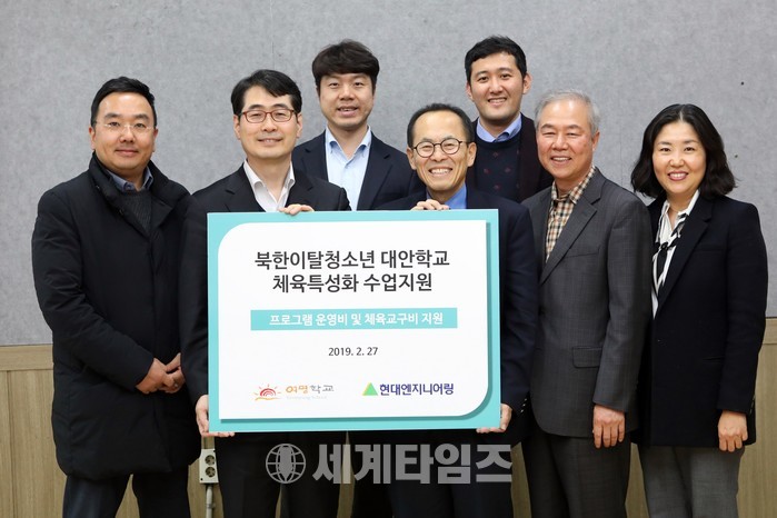 현대엔지니어링은 지난 27일(수) 서울 중구 남산동에 위치한 북한이탈 청소년 대안학교 ‘여명학교’에서 재학생 체육 특성화 수업을 위한 후원금 1,800만원을 전달했다.