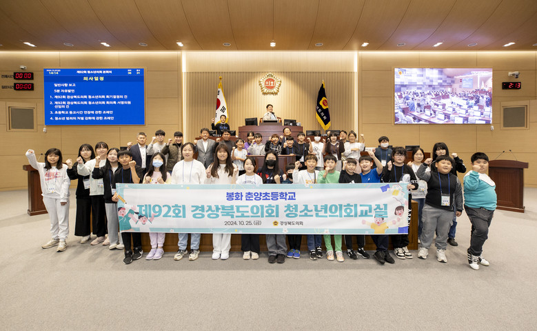 [경북 세계타임즈=한윤석 기자] 경상북도의회(의장 박성만)는 10월 25일(금) 본회의장에서 봉화 춘양초등학교 학생 40여명이 참여한 가운데『제92회 경상북도의회 청소년의회교실』을 개최했다.