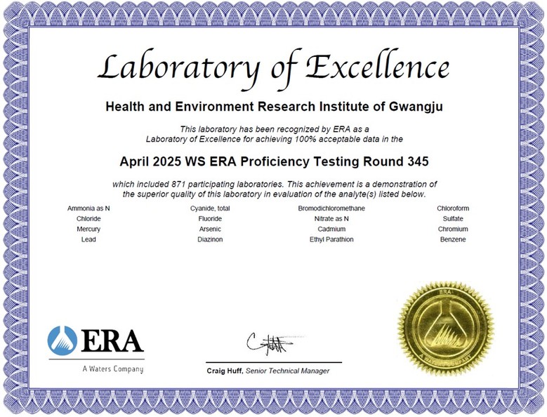 정현철 보건환경연구원장은 “국제숙련도 평가를 통해 연구원의 분석능력 우수성을 다시 확인할 수 있는 계기가 됐다”며 “앞으로도 연구원의 검사 전문성과 데이터 신뢰도를 높여 시민이 먹는물을 안심하고 마실 수 있도록 노력하겠다”고 말했다.