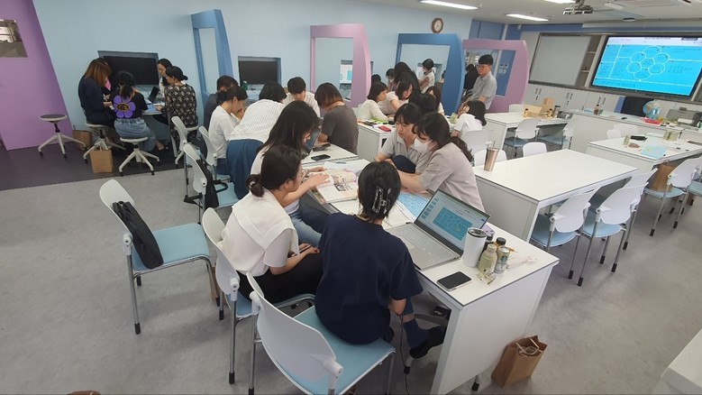 성찰의 시간이 주는 역동성은 컸다. 특히 지난 7월 5일, 교사들이 한자리에 모인 수업나눔 컨퍼런스에서 ‘IB 교육 도입을 위한 개념기반 탐구학습의 실천 설계’를 위한 공동학습이 거론되었다. ▷PYP에서의 개념은 무엇인가 ▷핵심 개념과 ATL(학습접근방법) ▷개념기반 탐구학습 UOI 설계 ▷IB 학습자상, 초학문적 주제와 관련 설명에 대한 이해 ▷중심아이디어와 2022개정 교육과정의 핵심아이디어 비교 등을 함께 정리해 보았다. 그리고 개념기반탐구학습 방법을 적용, 학년별로 2학기 탐구 단원을 설계해 보았다. 처음에는 IB 교육프로그램의 용어들이 익숙하지 않아서 혀끝에 맴돌았지만 점차 토론이 깊어지면서 앞에서 살펴본 미션들이 모두 포함되는 설계 초안을 만들어냈다. 더구나 미래과학실의 에듀테크 토론장은 과정 활동을 확인하며 목표를 향해 가는 모든 것을 즉시 공유하고 새롭게 아이디어를 추가하는 협력적인 수행력을 드높였다고 분석했다.