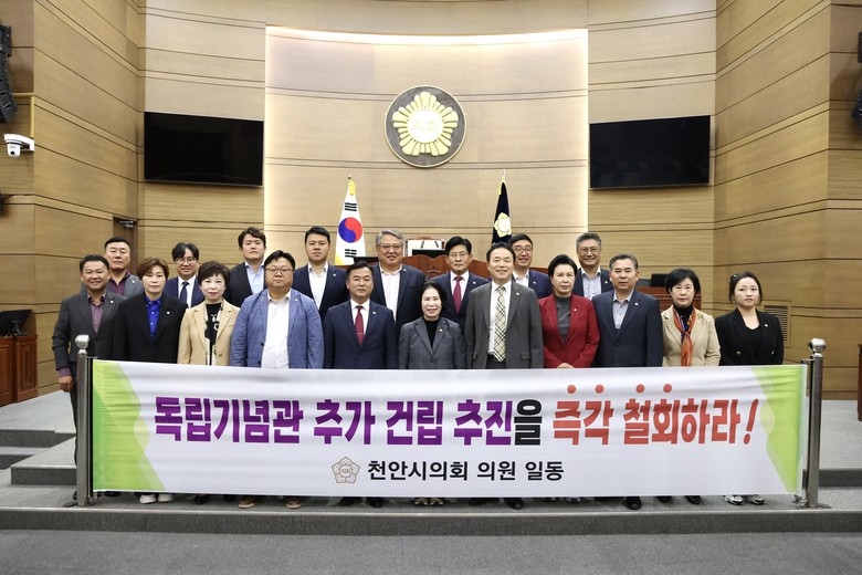 [천안시 세계타임즈=백택기 기자] 천안시의회(의장 김행금)는 25일 제273회 임시회 제6차 본회의에서 ‘독립기념관 추가 건립 반대 결의안’을 채택했다.