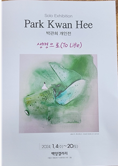 [세계타임즈 = 이현진 기자] 2024년1월2 일 부터 20일까지 서울 영등포구 국회대로 640 준빌딩 3층 백양갤러리에서"생명으로 To Life"라는 주제로 박관희 개인전 전시하고 있다.