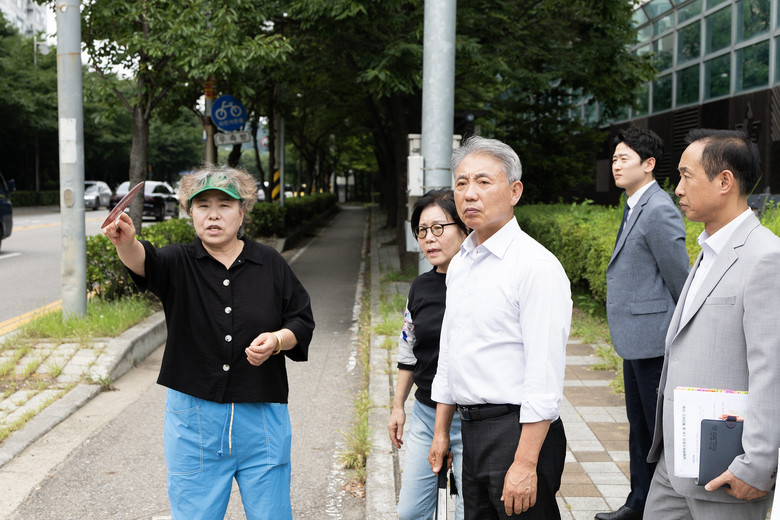 이날 윤환 구청장은 공원 이용 불편, 횡단보도 위치 조정, 학교 앞 그늘막 설치, 자전거 거치대 확충 등 다양한 민원 현장을 찾아, 직접 주민들과 만나 소통하며 시설 상태와 이용 편의를 꼼꼼하게 살폈다. 특히, 보행자 동선과 맞지 않는 횡단보도 현장에서는 도로 구조와 차량 흐름을 면밀히 검토하며 구조 개선의 필요성을 논의했다.