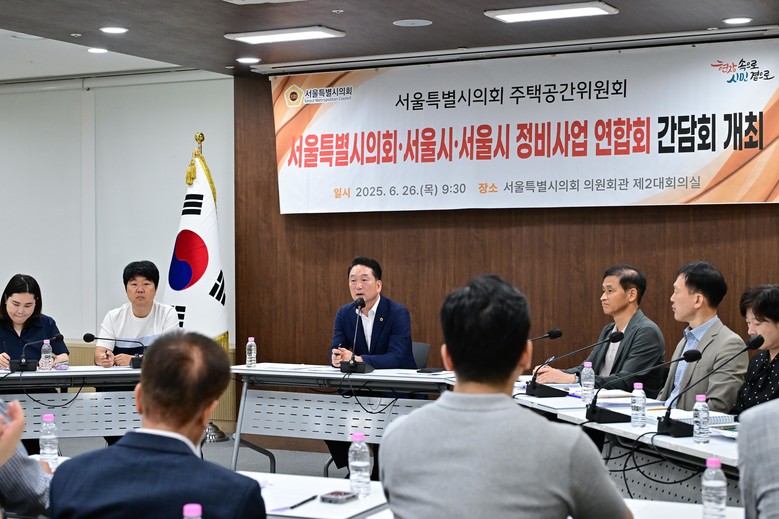 [서울 세계타임즈=이장성 기자] 서울시의회 주택공간위원회 김태수 위원장(국민의힘, 성북구 제4선거구)은 6.26.(목) 오전 9시 30분부터 2시간 동안 서울시 전역의 신속통합 주민대표 연합회와 서울시 정비사업 주무부서 과장 등과 함께 간담회를 개최하였다.
