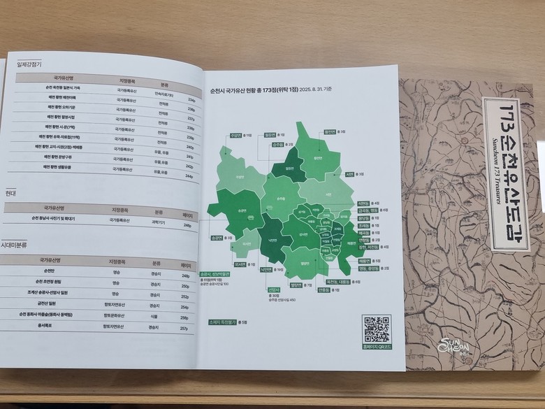 특히 시민과 학생들이 현장 답사에 유용하게 이용할 수 있도록 순천시 문화유산 173개소의 위치와 탐방 정보를 수록했다.