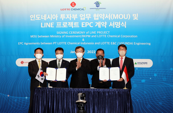 7일(금) 잠실 롯데타워에서 화상으로 진행된 본계약 체결식은 김교현 롯데케미칼 부회장, 홍현성 현대엔지니어링 플랜트사업본부장, 바흐릴 라하달리아 인도네시아 투자부장관 등 주요 관계자들이 참여한 가운데 거행됐다.