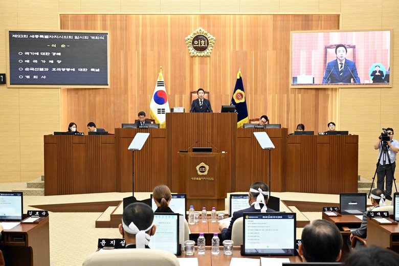 [세종 세계타임즈=이채봉 기자] 세종특별자치시의회(의장 임채성)는 11일 제93회 임시회를 개회하고 이날 제1차 본회의를 시작으로 23일까지 13일간 회기를 진행한다.