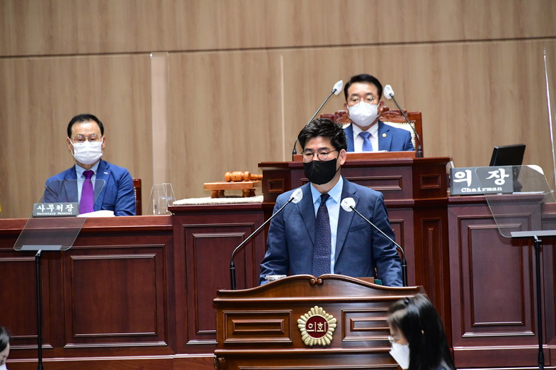 정무창 의장 당선자는 “제9대 전반기 의장의 중책을 맡겨 주신 동료의원 여러분께 깊은 감사와 경의를 표했다. 시민의 삶과 생활을 우선에 두는 ∆민생의회, ∆시민과 소통하는 의회, ∆의원 간 협업, ∆청렴한 의회, ∆연구하며 일하는 의회 상을 제시했다. 의회의 높아진 위상과 권한만큼 시민의 다양한 요구를 귀담아 듣는 품격 있고 능력 있는 의회를 운영하겠다”고 당선 소감을 밝혔다.