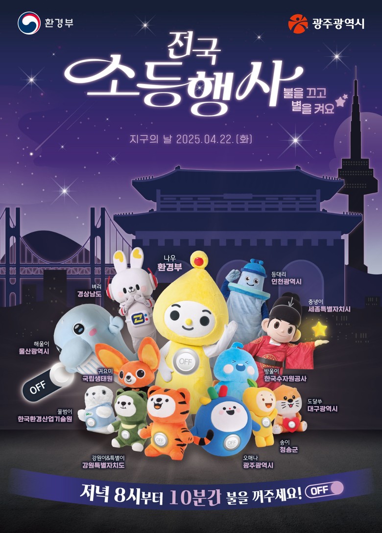 나병춘 기후대기정책과장은 “지구의 날을 맞아 지구의 소중함을 다시 생각하고 일상 속에서 지구를 지키는 작은 실천에 동참하기를 바란다”며 “지구의 날 기념행사와 소등행사에 많은 시민들이 참여해 ‘우리 힘으로 그린(GREEN) 지구’를 만들어갔으면 한다”고 말했다.