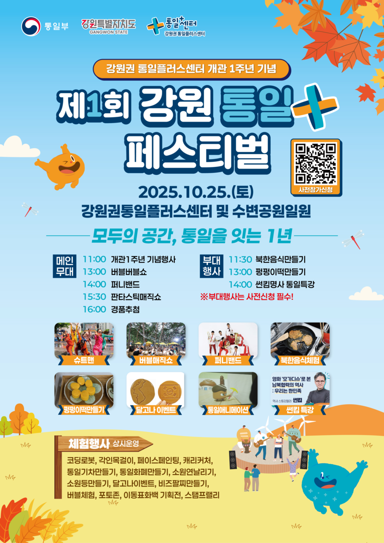 이명권 강원권 통일플러스센터장은 “지난 1년 동안 도민 여러분의 관심과 참여 덕분에 센터가 의미 있는 성장을 이뤘다”며, “이번 페스티벌을 계기로 통일문화 확산의 새로운 전기를 마련하고, 앞으로도 지역사회와 함께 발전하는 열린 플랫폼으로 자리매김하겠다”고 밝혔다.