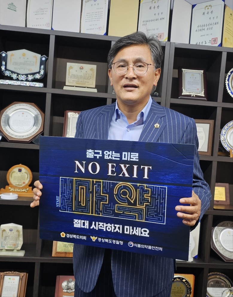 [경북 세계타임즈=한성국 기자] 경북도의회 기획경제위원회 박성만 의원(영주)이 6월 16일 마약 퇴치 릴레이 캠페인‘노 엑시트(NO EXIT)’에 동참했다.