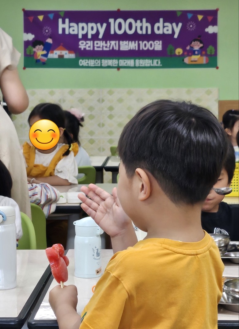 100일 축하 기념식에 참여한 유아들은 환하게 웃으며“선생님들이 내가 100번째로 왔다고 축하해 줬어요.”라며 자랑스럽게 말했다. 특히 영양사가 후식으로 준비한 딸기샤베트를 맛본 유아들은 “200일 되는 날도 기대됩니다”라며 앞으로의 유치원 생활에 대해 기대감을 나타냈다.