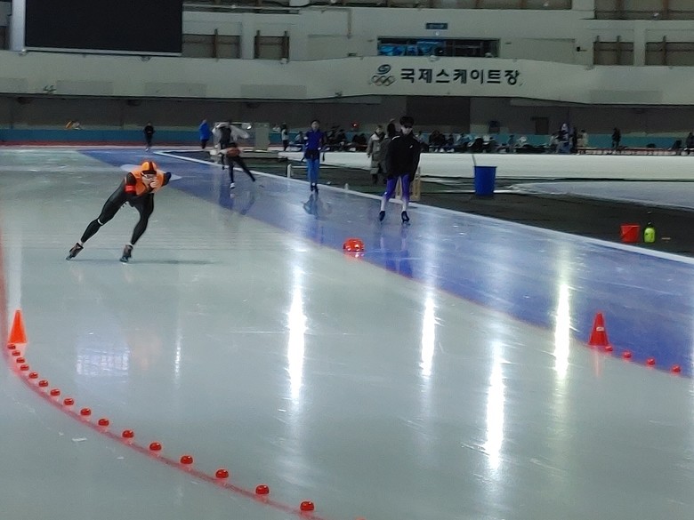 | ▲태릉국제스케이트장에서 남자일반부 1000m경기가 진행되고 있다. |