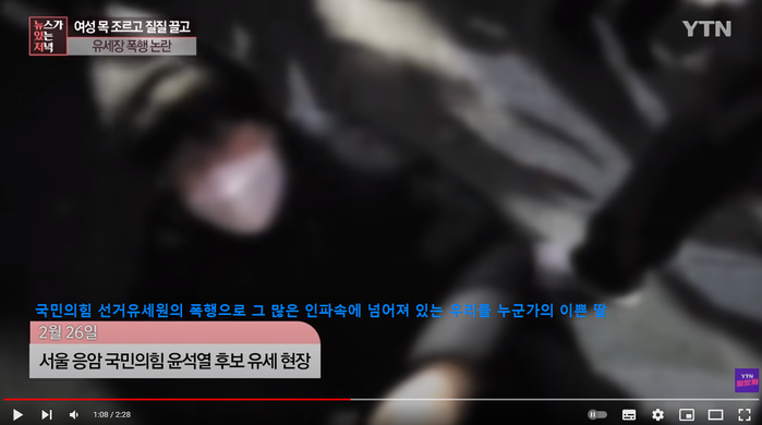 | 출처 : YTN YouTube 반대하는 유권자에게 폭행을 휘드르는 이것이 윤석열 후보가 이야기 하는 국민의 안전인가? |