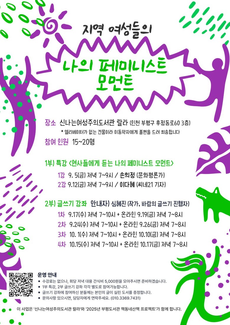 참가 신청은 부평도서관 누리집 공지사항의 신청 링크나 홍보지 QR코드를 통해 가능하며, 자세한 사항은 누리집(https://lib.ice.go.kr/bupyeong) 또는 독서문화과(☎032-510-7353)로 문의하면 된다.