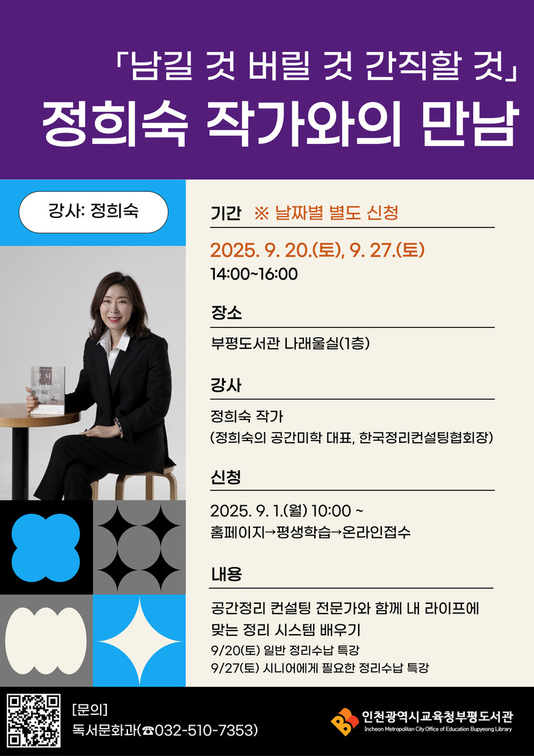 행사 참여는 누구나 가능하며, 자세한 내용은 부평도서관 누리집(https://lib.ice.go.kr/bupyeong) 또는 독서문화과(☎032-510-7353)로 문의하면 된다.