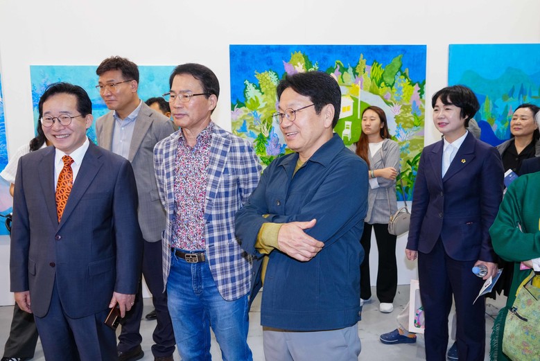 특히 진도 출신의 세계적 현대미술가 채성필 작가의 개인부스전이 큰 주목을 받았다. 작가는 한국 전통미술과 현대회화를 조화롭게 결합한 작품을 통해 동서양의 경계를 넘나드는 독창적 예술세계를 선보였다. 특히 바다의 움직임을 현대미술적 언어로 재해석한 ‘물의 초상’은 동양의 미학적 감수성이 잘 드러나는 작품으로 관객들의 발걸음을 멈추게 했다.