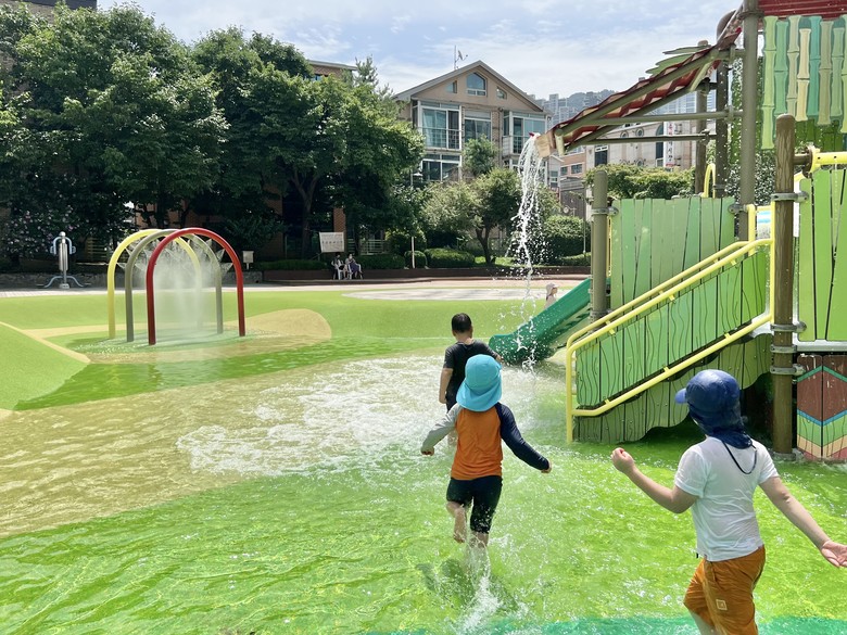 이는 유치원의 7월 놀이 주제 ‘물’과 관련하여 물의 특성을 알아보고 물을 활용하여 놀이하기 위한 것으로, 유아들은 물놀이터에서 다양한 물놀이 시설을 체험하고 신나게 뛰놀며 물의 다양한 특성을 직접 몸으로 느껴보고 탐구하는 시간을 가졌다.
