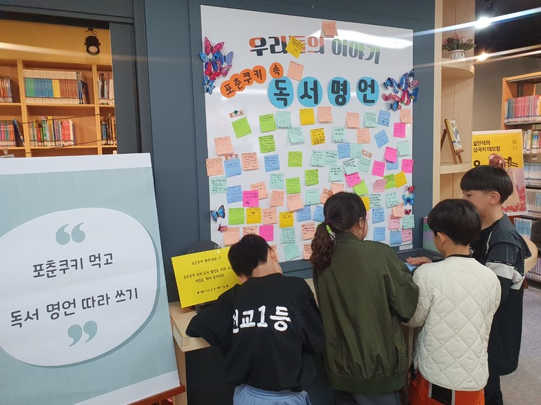 주요 행사로는 ▶ 출판사에서 제공받은 그림책 원화 전시회 ▶ 내 마음이 통(通)하는 한 장면에 생각과 느낌 쓰기 ▶ 행운을 주는 포춘 쿠키 속 독서 명언 나누기 등이다.