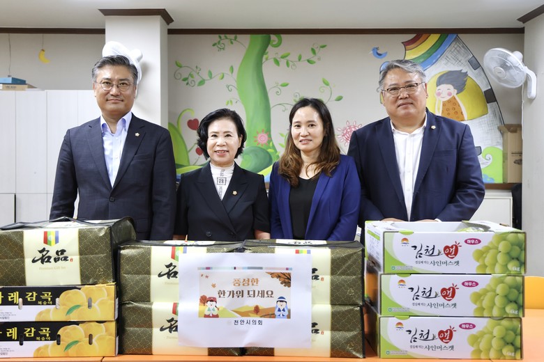 [천안시 세계타임즈=백택기 기자] 천안시의회(의장 김행금)는 지난11일, 추석 명절을 앞두고 관내 사회복지시설을 방문 했다.