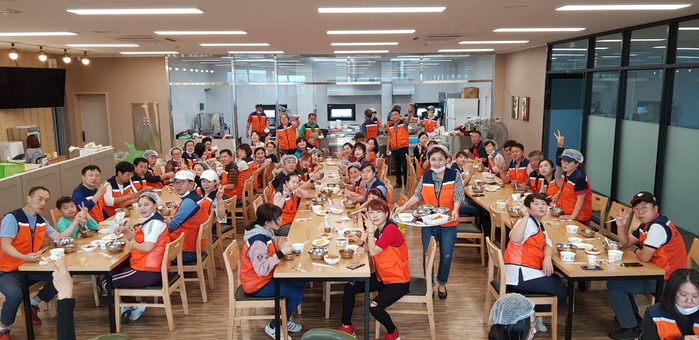 이날 밑반찬 봉사는 멸치꽈리고추볶음, 깍두기, 계란말이 3가지를 자원봉사자 100명이 정성을 다해서 만들고 배달을 하였다.