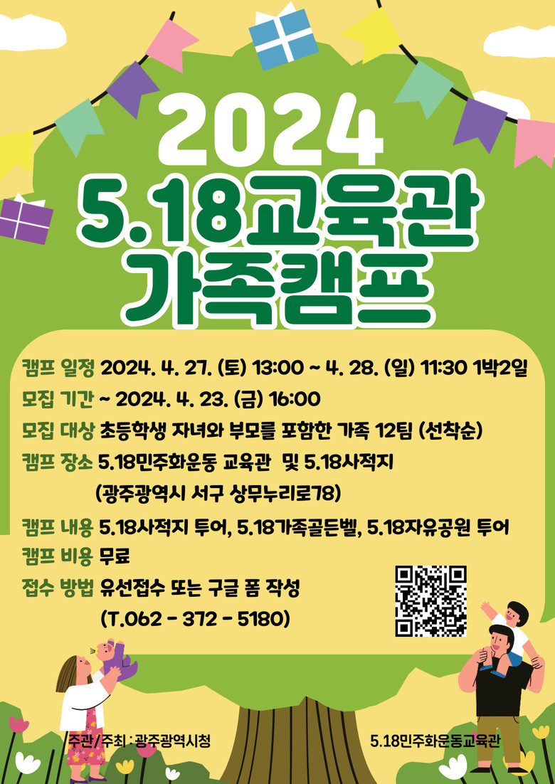 박용수 민주인권평화국장은 “5·18가족캠프를 통해 가족의 소중함과 공동체 정신을 일깨우고, 동시에 5·18의 민주시민 정신을 다음 세대에도 계승할 수 있는 의미 있는 시간이 되길 바란다”고 말했다.