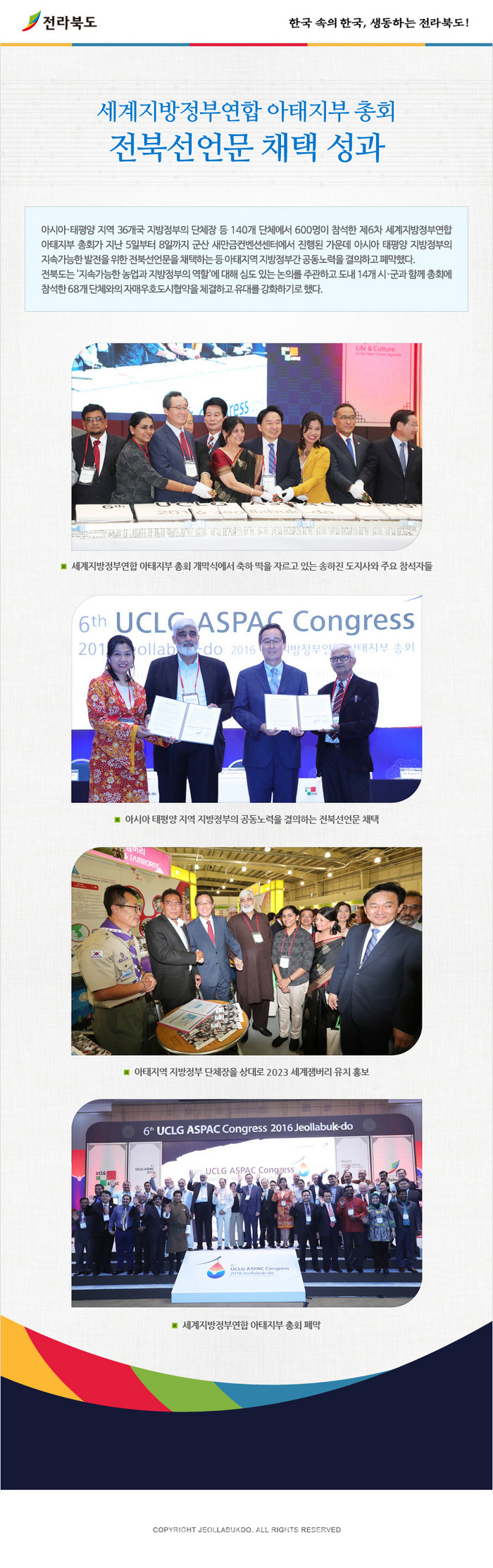 [전북=세계타임즈 이정술 기자] 송하진 전북도지사, 세계지방정부연합 아태지부 총회 '전북선언문' 채택 성과