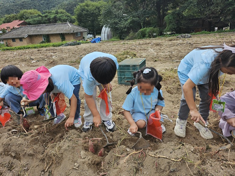 만 5세 큰빛반은 양평에 있는 외갓집체험마을에서 고구마 캐기, 인절미 떡메치기, 연날리기, 딱지치기 등 다양한 전통 체험 활동에 참여했다. 큰빛2반 A 어린이는 “고구마를 캐는 게 가장 재미있었어요. 땅 속에서 고구마가 나올 때 친구들과 함께 ‘우와!’ 하고 외쳤어요”라며 소감을 밝혔다. 이번 체험학습은 자연과 문화를 동시에 경험하며 전통을 이해하는 시간을 제공했다.