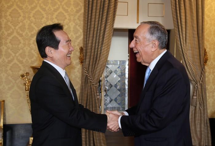 [세계타임즈 이채봉 기자]포르투갈을 공식방문 중인 정세균 국회의장은 현지시간 1월 19일(금) 마르셀로 헤벨로 드 소우자(Marcelo Nuno Duarte Rebelo de Sousa) 대통령과 만나 양국 간 교류확대와 협력 강화를 위한 방안을 논의했다.