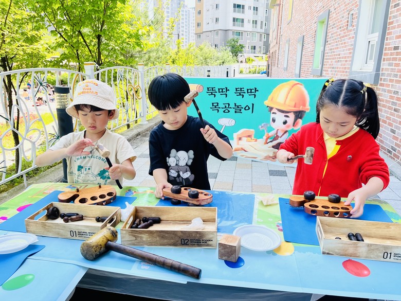 유아들은 꼬치 어묵, 요거트, 소떡소떡의 간식을 먹고 비눗방울 놀이와 보물찾기 놀이를 했으며, 목공놀이를 하며 나만의 나무 자동차를 만들었다. 또한, 유치원에 등장한 공주님과 함께 사진도 찍으며 행복한 시간을 보냈다.
