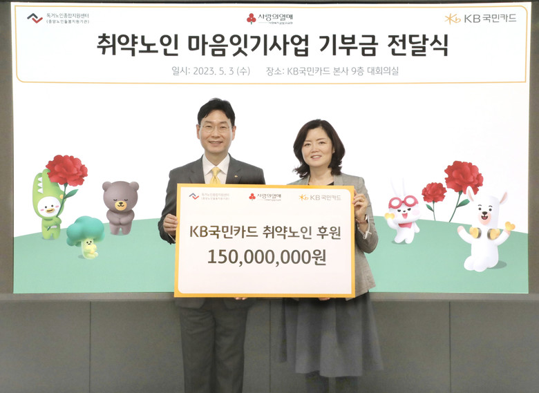 KB국민카드 관계자는 “이번 후원을 통해 돌봄 사각지대에 있는 어르신들께 따뜻한 마음이 전달되기를 희망한다.”며 “앞으로도 KB국민카드는 사회적 약자와 취약계층을 위한 사회적 책임을 다하고 ESG 경영을 지속 실천해 나갈 것” 이라고 밝혔다.