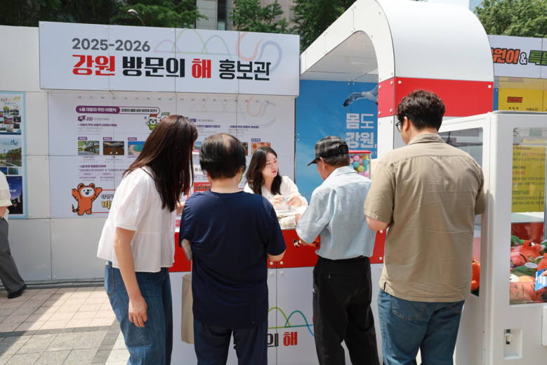6월 17일(화)에는 서울 청계광장에서 열린 수도권 강원시대 행사에서 ‘강원 방문의 해 홍보관’을 운영하며 방문객들의 뜨거운 호응을 얻었다. 강원특별자치도의 사계절 관광지, 추천 여행 코스, 지역 축제 및 행사 정보 등을 안내하고 다채로운 이벤트를 진행하여 강원관광의 매력을 집중적으로 알렸다. 또한, 6월 추천 여행지인 고성군과 영월군에서도 부스를 운영하여 풍성한 정보와 이벤트를 통해 방문객들의 발길을 사로잡았다.