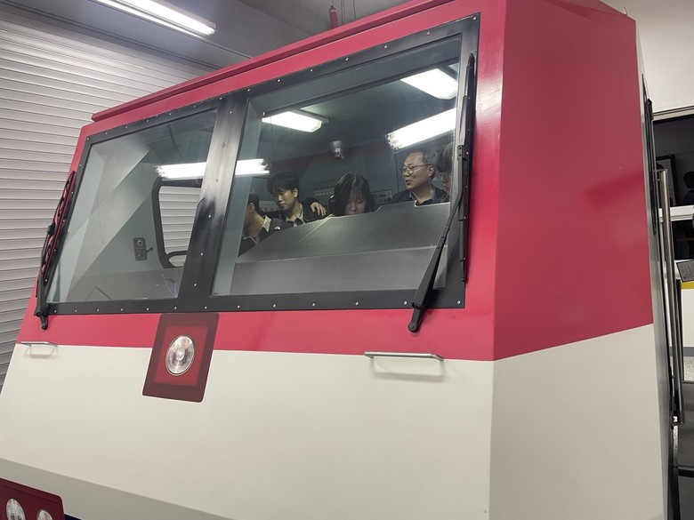 ▲ 전기동차운전실습 광주시교육청이 13일 송원대학교에서 운영한 '빛고을 직업교육 혁신지구 대학 탐방 프로그램'에 참여한 직업계 고등학생들이 미래운송기기 분야 서울 4호선 전기동차운전실습 수업에 참여하고 있다./광주광역시교육청 제공 |
