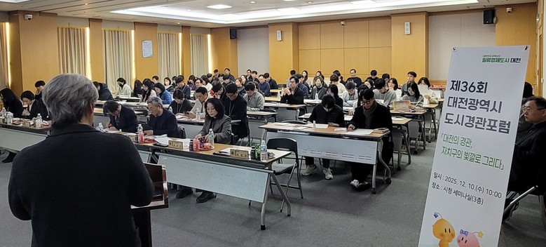 이날 주제 발표를 맡은 박준완 ㈜오씨에스도시건축 이사는 대전시의 강점인 다양한 경관 요소에 대한 실천적 과제를 제시하고 차별화된 5개구의 특색을 담아내는 대전시의 경관 미래상과 전략을 제시했다.