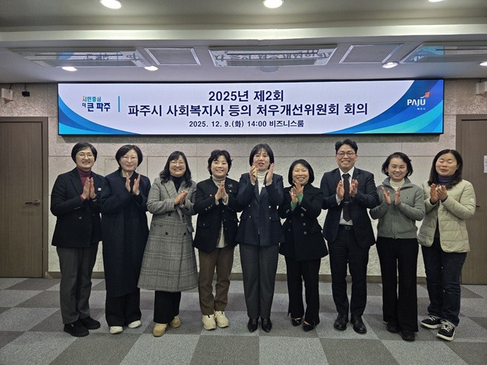 [파주시 세계타임즈=송민수 기자] 파주시는 9일 ‘2025년 제2회 파주시 사회복지사 등의 처우개선위원회’ 회의를 개최하고, 사회복지 종사자의 처우를 개선할 수 있는 방안에 대해 주요 안건을 심의했다고 밝혔다.