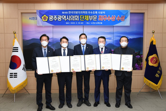 이와함께 김용집 의장이 전국최초 발의한「광주광역시가사근로자등의고용개선 및지원조례」, 장재성 의원이 전국 최초로 발의한「광주광역시 택배노동자 지원 조례」, 반재신 의원이 발의한「광주광역시 도시계획변경 사전협상 운영 조례」, 송형일 의원이 발의한「광주광역시 주민자치회 활성화 지원 조례」등 4개의 조례가 개인부문 우수상에 선정되는 쾌거를 이루었다.