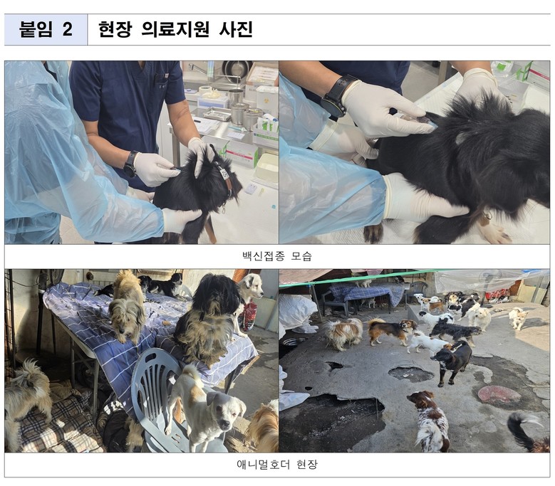 - 재정이 어려운 시설에 수의사 파견해 동물 등록‧예방 접종 및 중성화 수술