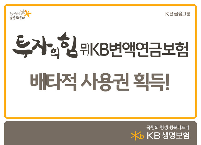 지난 4월 12일 열린 생명보험협회 제2차 신상품 심의위원회는 '투자의힘 무)KB변액연금보험'의 독창성, 진보성 등을 높이 평가하여 6개월의 배타적사용권을 부여 하였다. 배타적사용권이란 일종의 독점영업권으로 상품의 독창성, 진보성, 유용성 등을 평가해 일정기간 독점적으로 판매할 수 있는 권한을 부여하는 것이다.